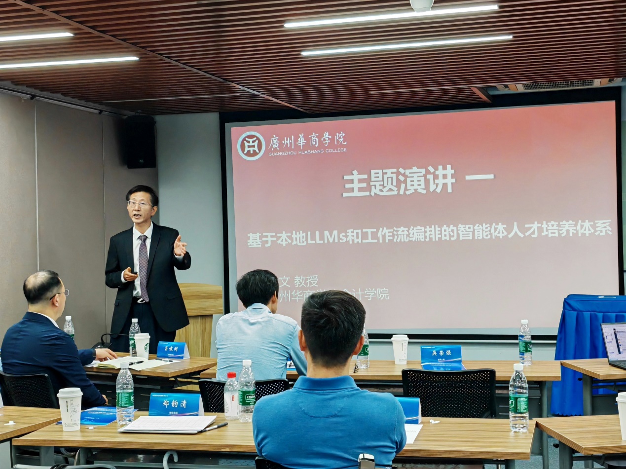 在主题演讲环节,太阳成tyc33455cc官网会计公司朱文教授,以“本地LLMs与工作流编排的智能体人才培养体系”为题,深度解析了数智教育的“华商方案”,首次公开展示公司自主研发的“神华AI嵌入平台”。该平台以本地大模型为核心,融合多模态数据处理、知识库构建和智能体开发,搭建了跨学科、全流程、可扩展的人才培养新业态,结合跨学科项目如“企业健康评价”(融合会计学、金融学与AI技术)和“乡村休闲榜单”(整合经济学、统计学与LLMs),实现了从数据治理到智能决策的全链条协作。朱教授强调,“无AI不华商”是公司在AI时代背景下的愿景,通过“工作流编排+本地化模型”双轮驱动,为跨学科融合实践提供了新范式,推动“人人会用大模型、人人可享高算力、人人拥有知识库、人人能建智能体”在华商校园全面落地。