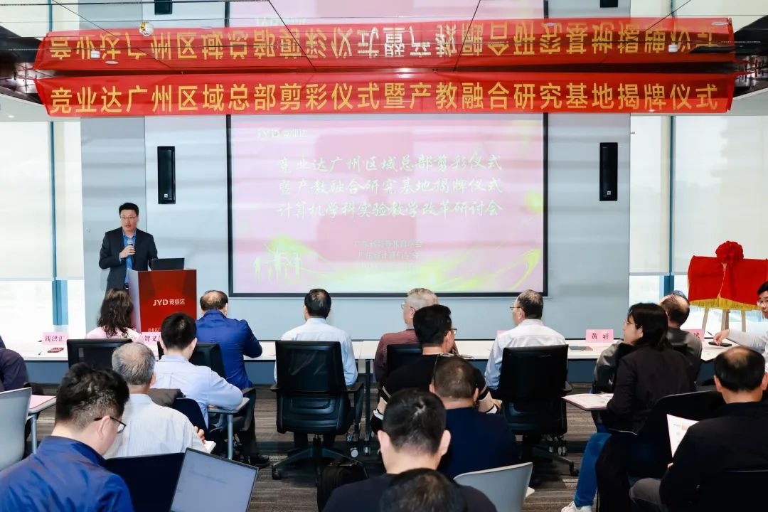 广东省计算机学会领导、广东省高等教学学会领导、广东省各高校计算机相关专业公司的领导与教师代表、职校计算机相关专业公司的领导与教师代表、计算机相关专业合作企业代表出席盛会,此次会议还有另外一个主题是北京竞亚达数码科技股份有限公司产教融合研究基地揭牌仪式与北京竞亚达数码科技股份有限公司广州区域总部乔迁仪式。此次会议由北京竞亚达数码科技股份有限公司实验教学与产教融合BU副总裁李朝辉、北京竞亚达数码科技股份有限公司副总裁李文波主持。