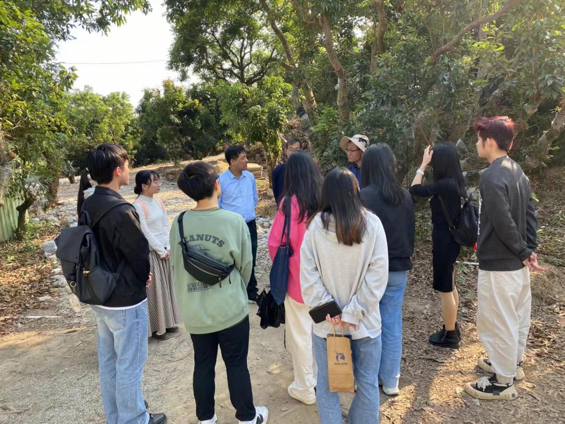 1月7日,老师带领9名员工一同前往广州增城区荔城街庆丰村马屋村的荔枝果园开展乡村振兴项目考察。