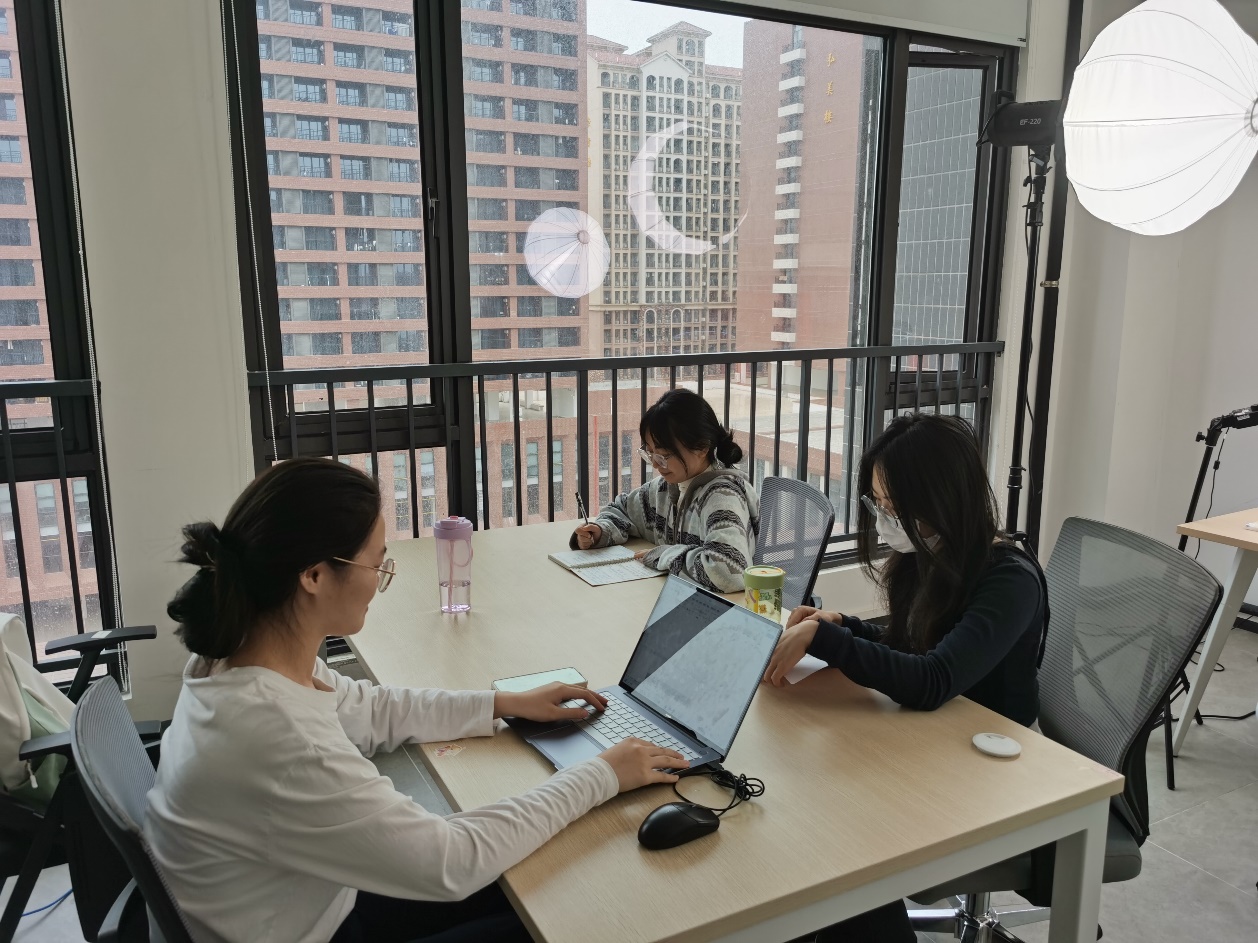 1月11日,联合桃花岛开展直播助农项目,组建工作坊,员工开展直播相关技能学习与实践。