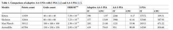 在2023年,戴经国教授独创性地提出了一种用于表面重建的快速算法。该算法通过交替使用 Anderson外推与隐式渐进迭代逼近(I-PIA),能够快速从点云数据收敛。该算法在迭代过程中采用固定步长来增强收敛性。为了进一步提高计算效率,本文进一步探讨了一种自适应步长调整策略用于表面重建算法。在每次迭代过程中,步长会根据当前的残差值自适应调整——较大的残差可能需要较大的步长,而较小的残差可能允许较小的步长。数值实验表明,在相同的重建误差条件下,自适应步长算法比固定步长方法 所需的迭代次数明显更少,计算时间也显著降低。这些改进显著提升了表面重建的计算性能,并为进一步的研究和应用提供了新的思路。