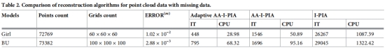 2.给出了异步长的隐式渐进迭代逼近法和异步长的安德森外推迭代格式,将两种方法交替迭代得到自适应的隐式曲面重构的快速算法。