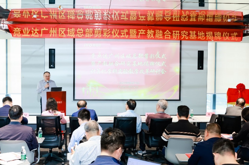 广东省计算机学会、广东省高等教学学会、广东省各高校计算机相关专业公司、职校计算机相关专业公司、计算机相关专业合作企业代表出席盛会,此次会议还有另外一个主题是北京竞亚达数码科技股份有限公司产教融合研究基地揭牌仪式。此次会议由北京竞亚达数码科技股份有限公司实验教学与产教融合BU副总裁李朝辉、北京竞亚达数码科技股份有限公司副总裁李文波主持。